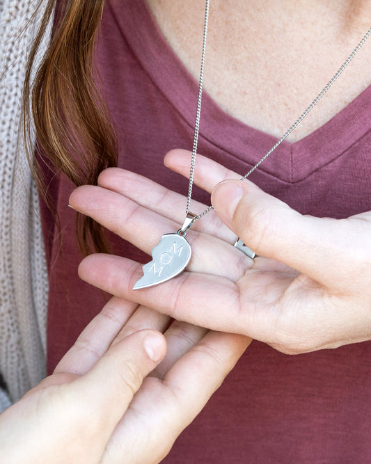 Mom Daughter Split Heart Pendant Necklace Set in Sta...