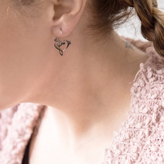 Musical Heart Treble and Bass Clef Dangle Earrings S...