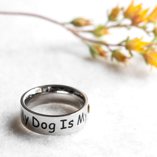 My Dog Is My Heart Stainless Steel Ring - Engraved D...
