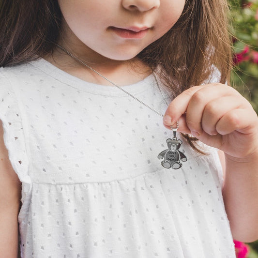 Love You More Teddy Bear Stainless Steel Pendant Nec...