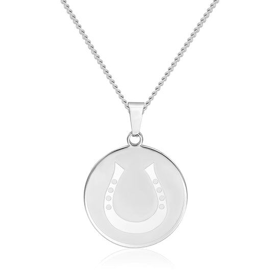 Lucky Horseshoe Stainless Steel Medallion Pendant Ne...