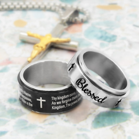 Lord's Prayer Engraved Ring with Rotating Band - Spi...